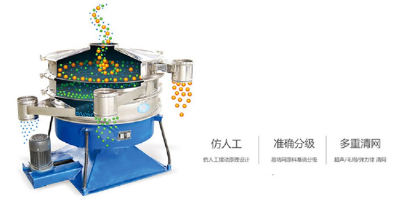 搖擺篩它采用仿生人工篩分的原理,將手工篩分動作的“篩”-(平面圓周運動)和“簸”-(向上拋物料)這兩種運動形式好的結合在一起,解決精細與超精細范圍的粉末與顆粒物料的篩分難題。