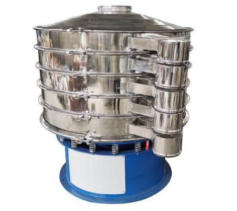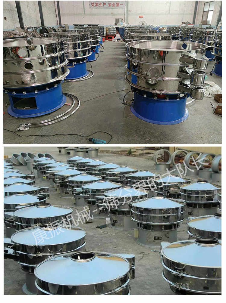 旋振篩是一種高精度細粉篩分機械,其噪音低、效率高,快速換網只需3-5分鐘,全封閉結構,適用于粒、粉、粘液等物料的篩分過濾。旋振篩是由直立式振動電機作激振源,電機上、下兩端安裝有偏心重錘,將電機的旋轉運動轉變為水平、垂直、傾斜的三次元運動,再把這個運動傳遞給篩面。調節電機上、下兩端的相位角,可以改變物料在篩面上的運動軌跡。