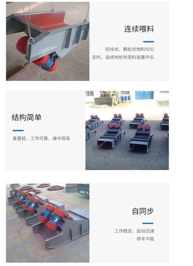 3、該機結構簡單,振動平穩,喂料均勻,連續性能好,激振力可調;隨時改變和控制流量,操作方便;偏心塊為激振源,噪音低,耗電少,調節性能好,無沖料現象;若采用封閉式機身可防止粉塵污染。