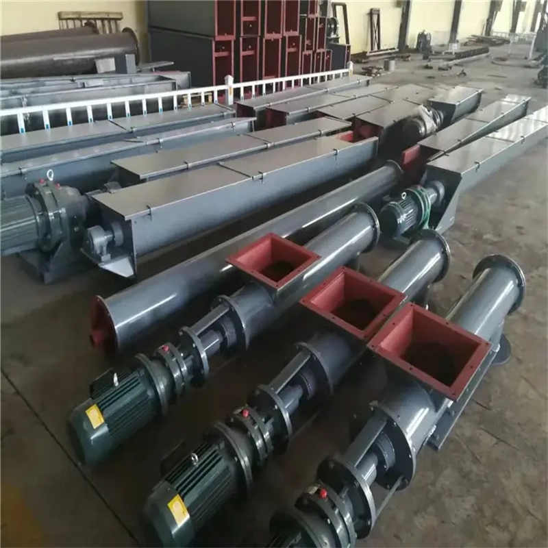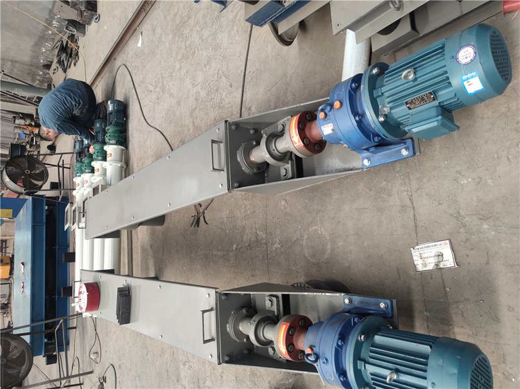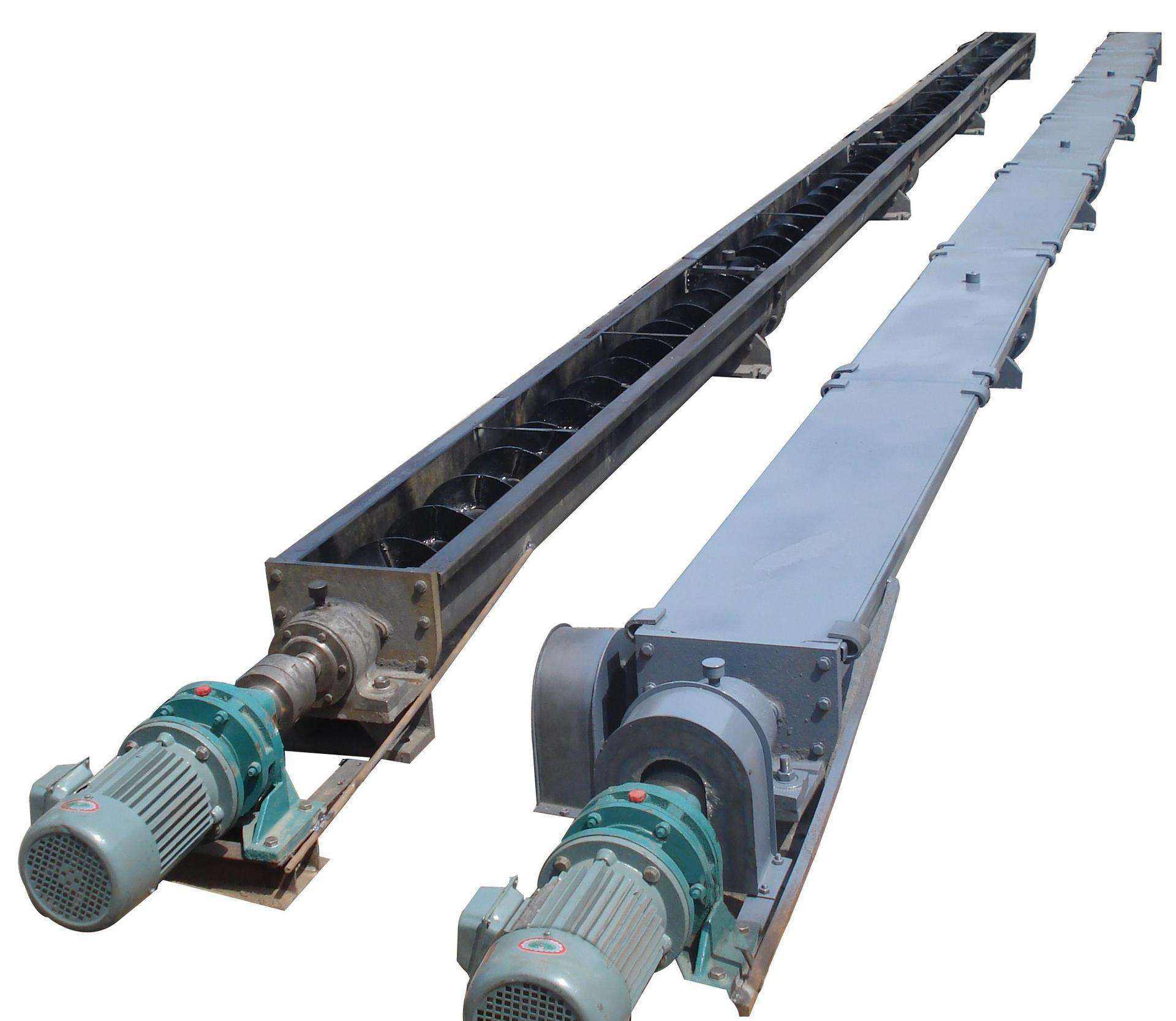 LS型螺旋輸送機是利用旋轉(zhuǎn)的螺旋將被輸送的物料沿固定的機殼內(nèi)推移而進行輸送工作,頭部及尾部軸承移至殼體外,吊軸承采用滑動軸承設(shè)有防塵密封裝置,軸瓦一般采用粉末冶金,輸送水泥采用毛氈軸瓦,吊軸和螺旋軸采用滑塊連接。