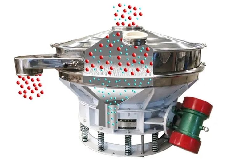 直排篩的作用原理是振動電機軸上下端的兩組偏心塊(不平衡偏心塊),將振動電機的旋轉運動變為水平、垂直、傾斜以及離心作用的多作用力重疊,再將這種作用力傳遞給篩面。改變上下偏心塊的相位角和可以改變激振力的大小和物料的運動軌跡?! ?/p>